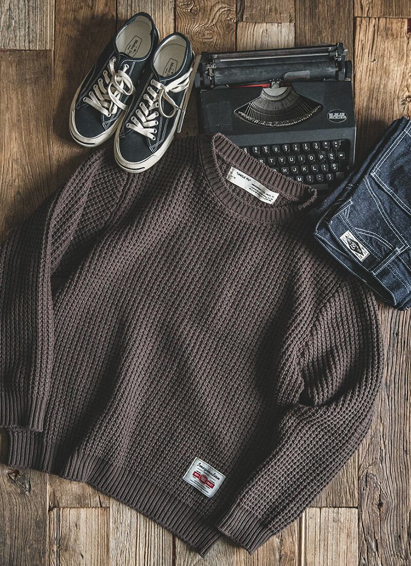 ルーズなシルエットが特徴のラウンドネックセーター。ヴィンテージ感のあるデザインで、アメカジコーデに最適。厚手で暖かく、秋冬のレイヤードにぴったりな一枚。